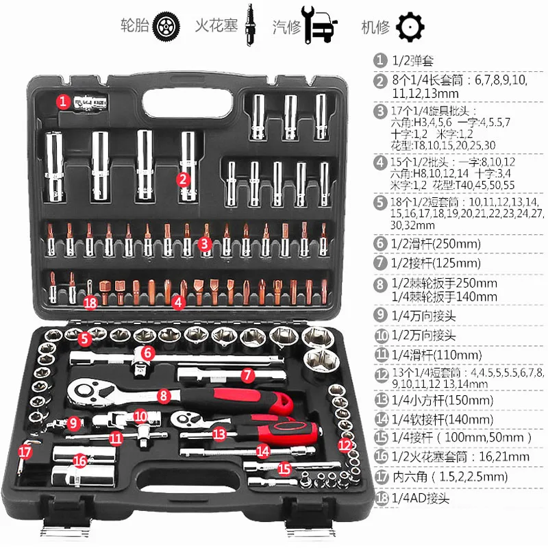 Product Name: 94pcs One Set Combination Household Tool Kit Socket Set Drive Ratchet Wrench Spanner Multifunctional Auto Repair Tools Set