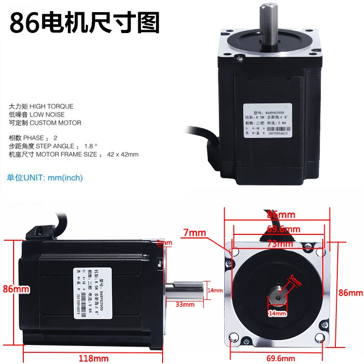 Product Name: 86 Stepper Motor Driver Set 8.5N.m Motor 86BYG250D Length 114mm DM860H