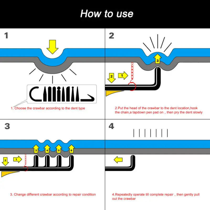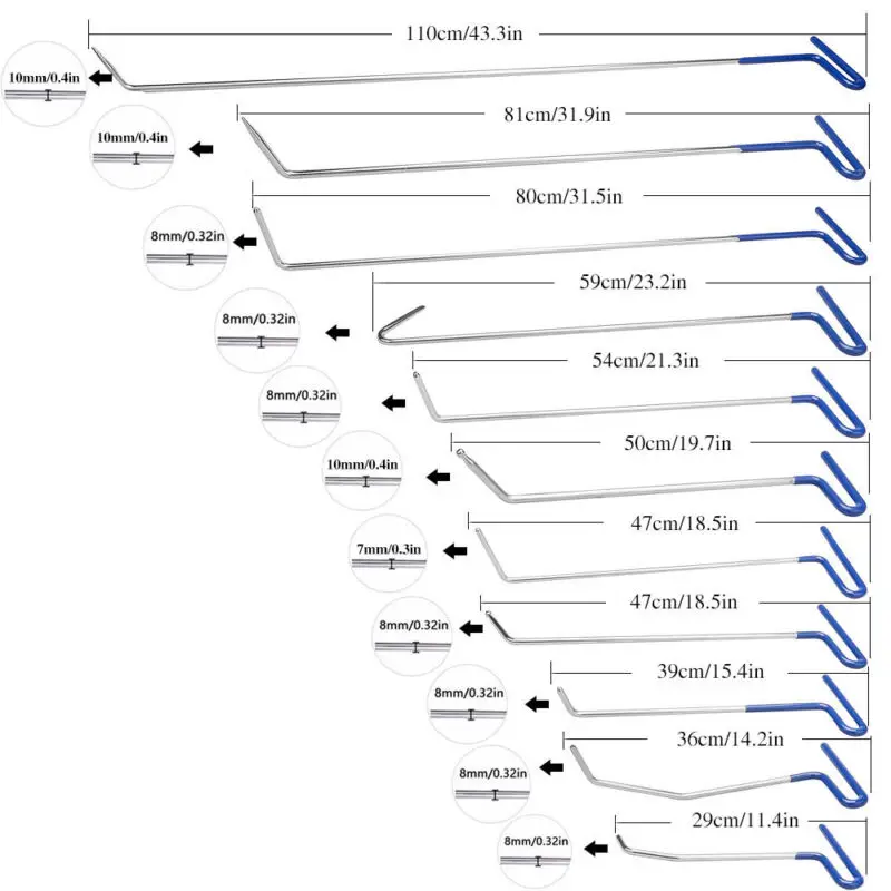 Product Name: Super PDR Tools Crowbars Car Push Hook Rod Paintless Dent Removal Kit Crowbar Opening Tool Repairing Hand Tool Pry Bar Set