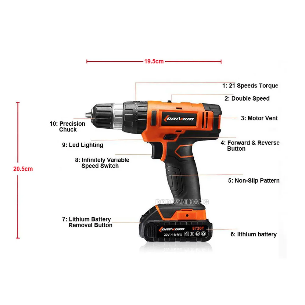 Special Offer Electric Cordless Drill With 2 Lithium Batteries Rechargeable Screwdrivers Impact Hand Power Home Woodworking Tools Set 20V Discount 32% Today!